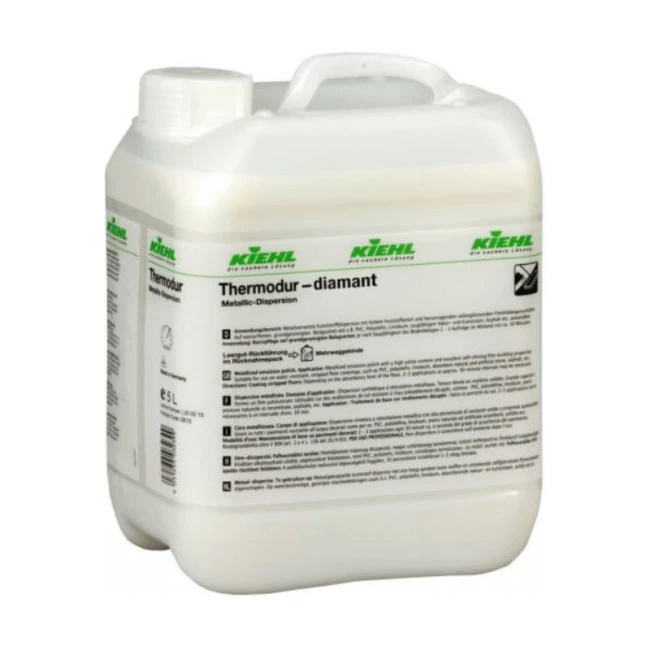 Thermodur Diamant este un produs de protecție foarte rezistent, conceput pentru pardoselile cu trafic intens, oferind un film durabil împotriva uzurii, zgârieturilor și murdăriei. Datorită formulei sale speciale, pe pardoseli noi sau dense un singur strat este suficient, iar pe suprafețe vechi sau foarte uzate sunt necesare 2 straturi pentru o protecție optimă. Stratul protector este rezistent la majoritatea produselor de dezinfectare. Aplicarea se face pe suprafețe decapate și uscate, folosind un mop plat, iar în funcție de absorbția pardoselii se aplică 1-2 straturi în interval de aproximativ 60 de minute.