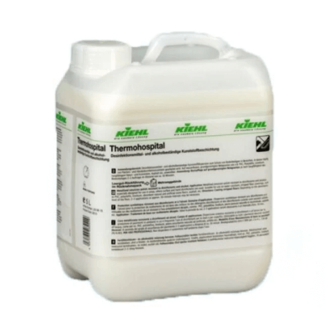ThermoHospital este un produs de protecție destinat pardoselilor supuse traficului intens și igienizării frecvente. Formulat cu materiale plastice rezistente la dezinfectanți și alcooli, este ideal pentru spitale, cămine de bătrâni, școli, grădinițe sau sanatorii, unde igiena strictă este esențială. Se aplică pe pardoseli decapate și rezistente la apă, precum PVC, linoleu, gumă sau piatră absorbantă, utilizând de asemenea un mop plat. În funcție de gradul de absorbție al pardoselii, se aplică 2-3 straturi la interval de aproximativ 30 de minute.